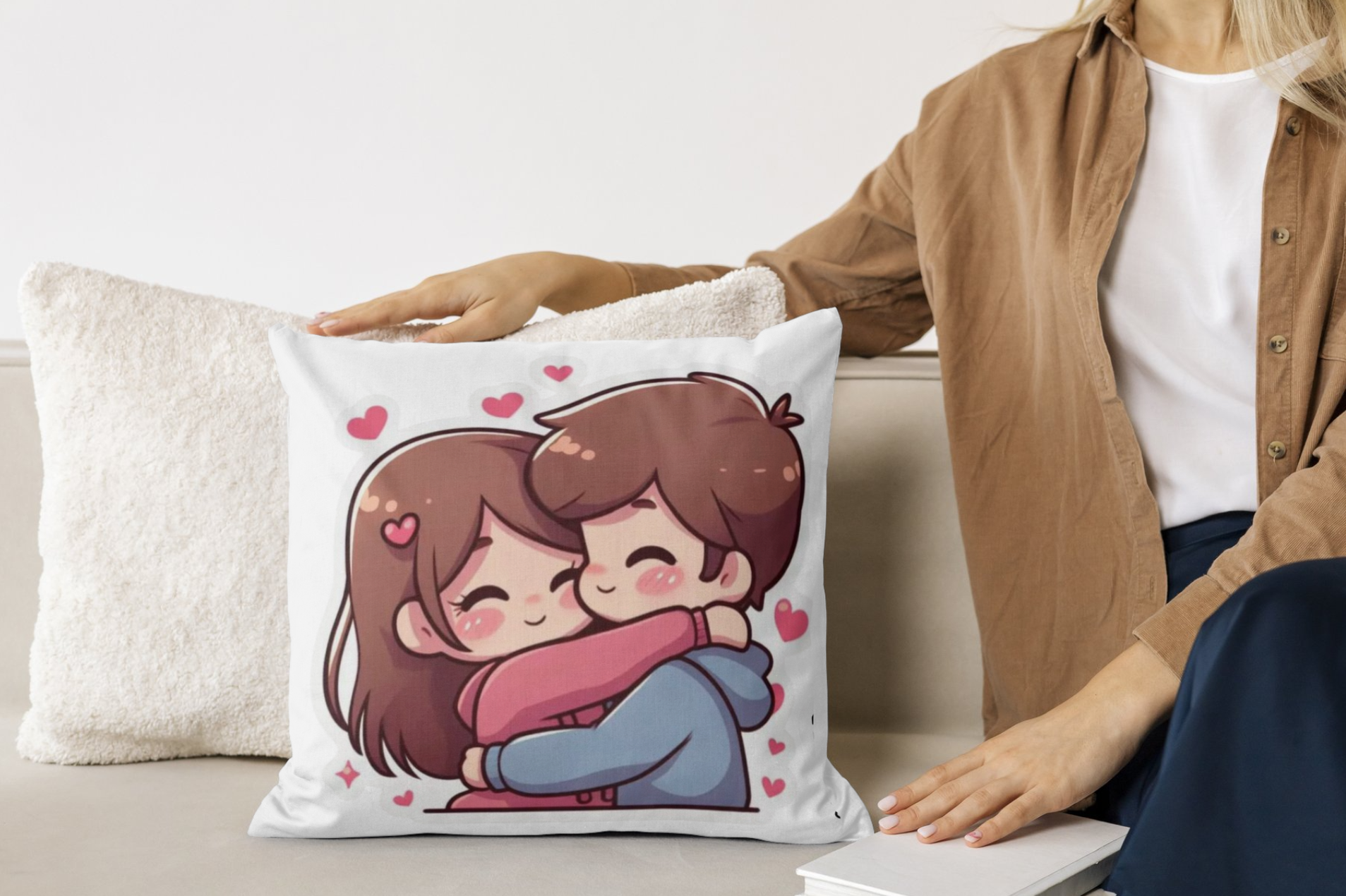 - Material: The pillow appears to be made from a soft fabric, suitable for use on a couch or bed.
