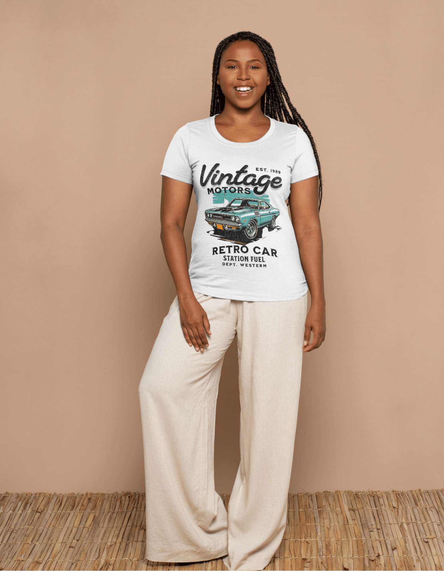 - Text: “Vintage Motors,” “Est. 1989,” “Retro Car,” “Station Fuel,” “Dept. Western.”